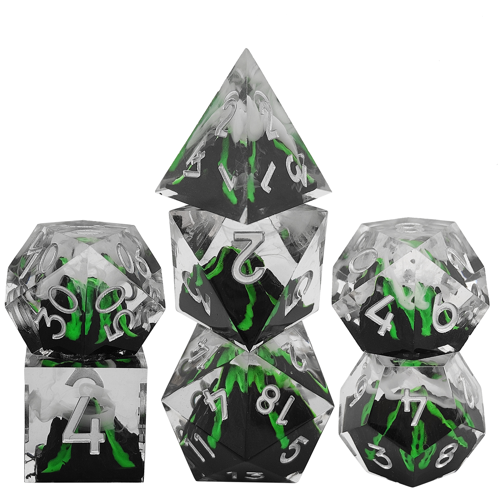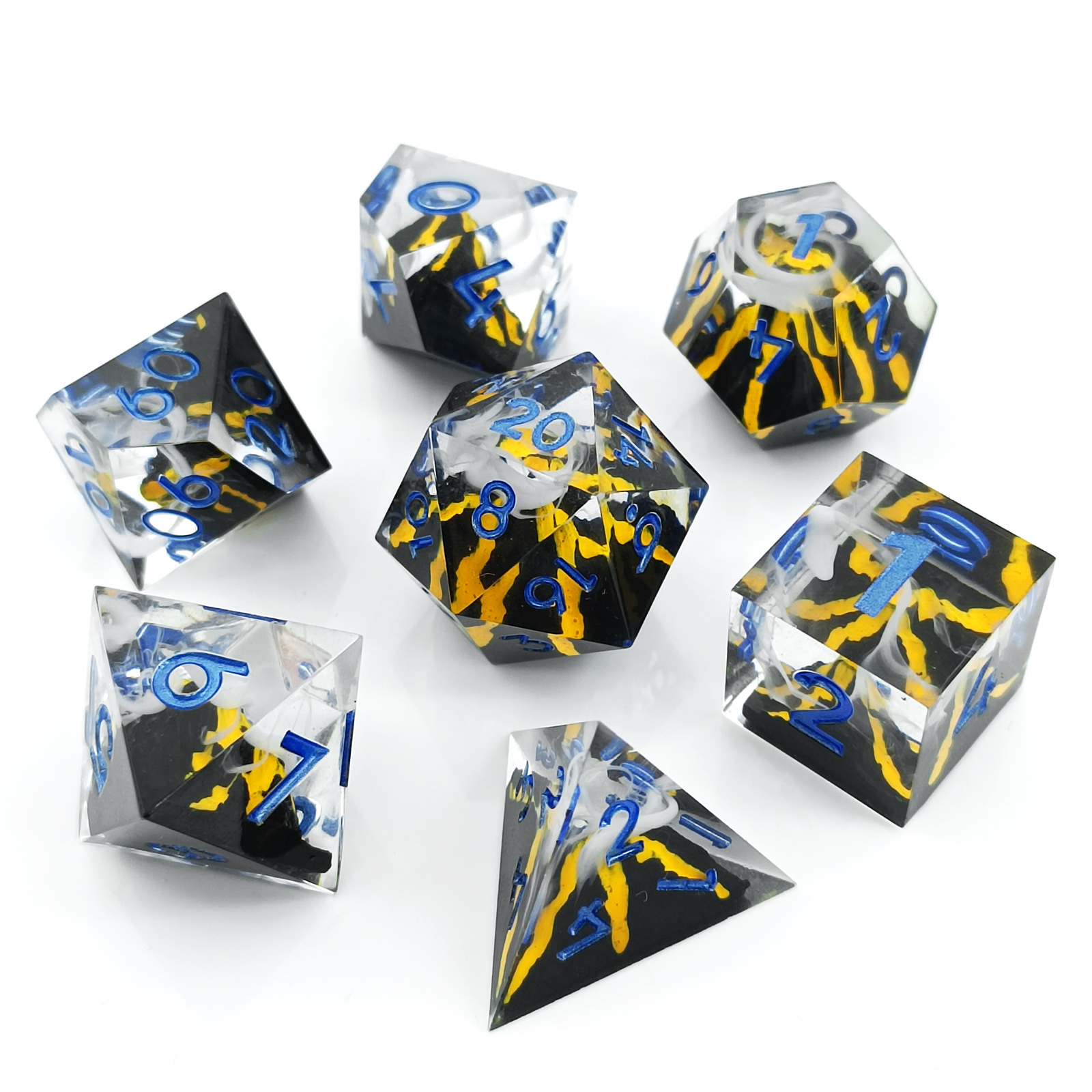 Each handmade resin dice set is individually cast and polished for a unique finish. Ideal for premium tabletop brands seeking artisan-style products, with support for private label and bulk orders.